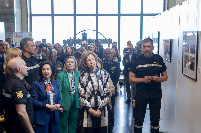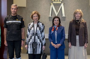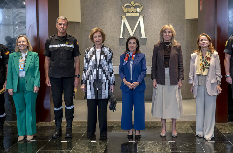 La Reina Sofía sorprende con su moderna chaqueta geométrica con parches 'animal print'