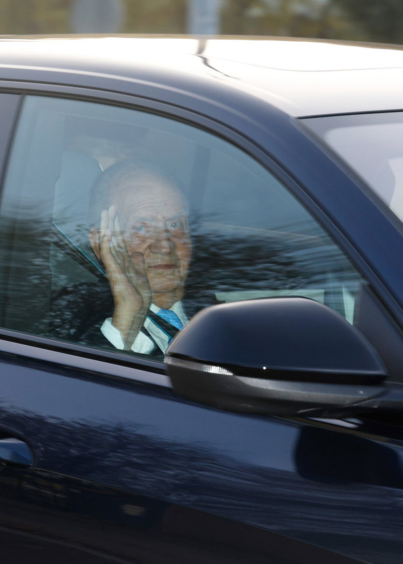 El Rey Juan Carlos abandona España arropado por las infantas Elena y Cristina tras su reencuentro con toda su familia