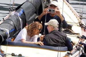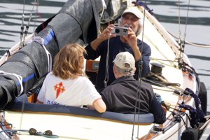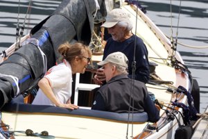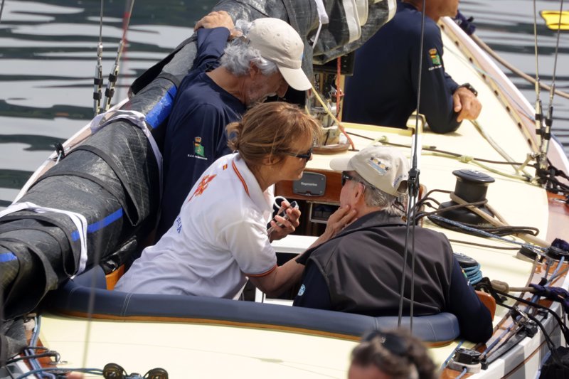 El Rey Juan Carlos protagoniza un divertido e inaudito momento con una señora en el puerto de Sanxenxo
