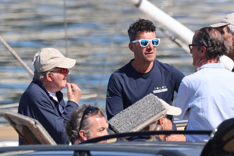 El Rey Juan Carlos I se queda sin navegar en Sanxenxo, pero visita a su tripulación en el puerto