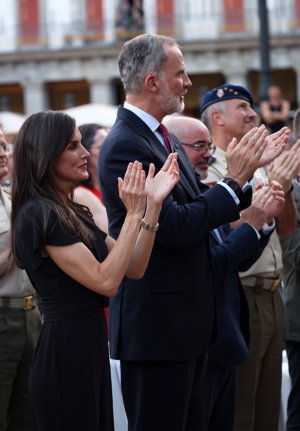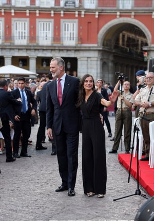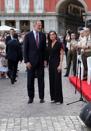 Los Reyes, Felipe y Letizia, más cómplices que nunca en su aparición sorpresa en la Plaza Mayor de Madrid