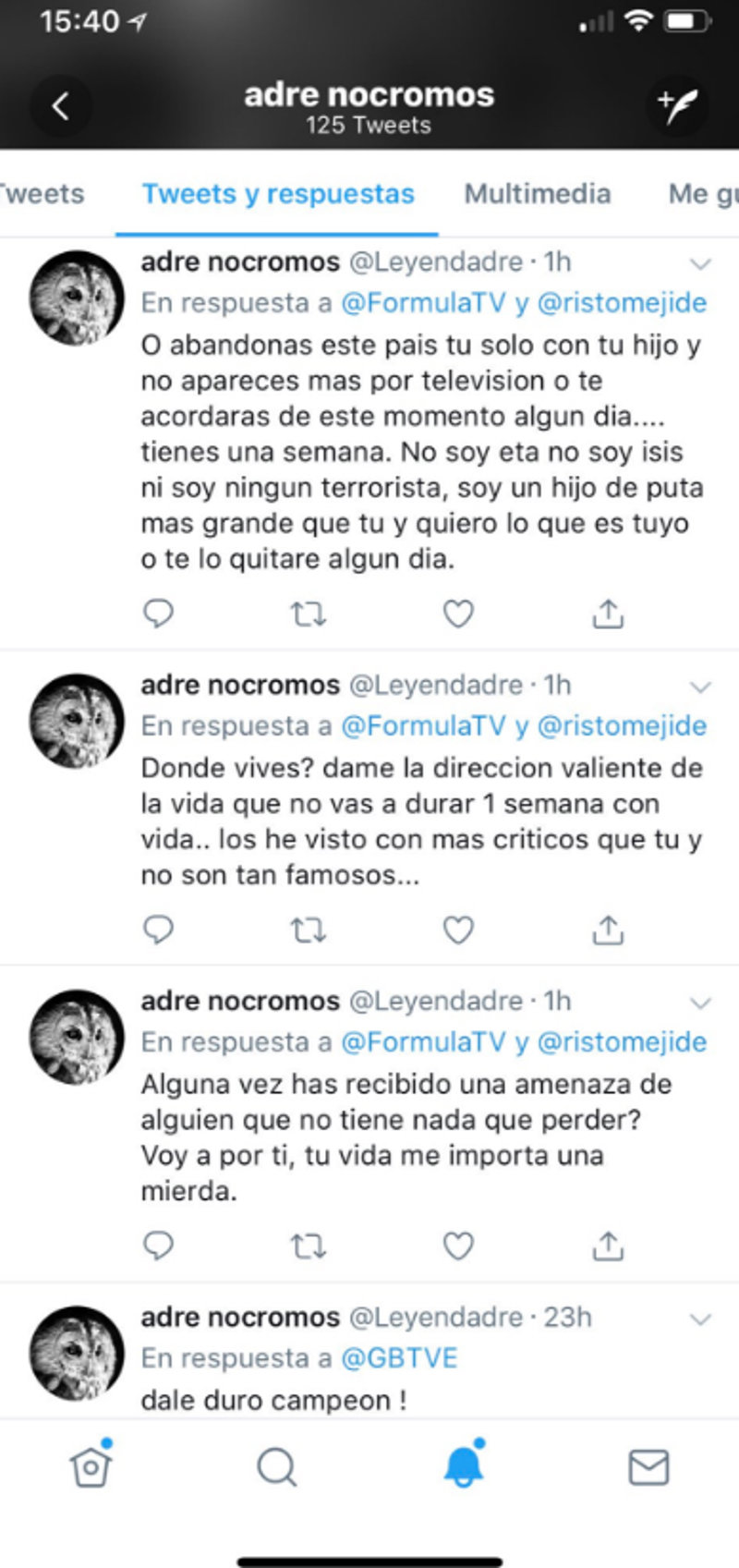 Risto Mejide amenazado de muerte y Laura Escanes insultada en Twitter. Todo en manos de la policía