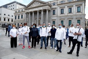 Samantha Vallejo-Nágera, Pepe Rodríguez y un sinfín de chefs protestan a las puertas del Congreso