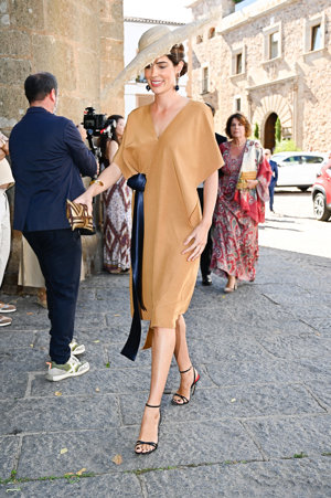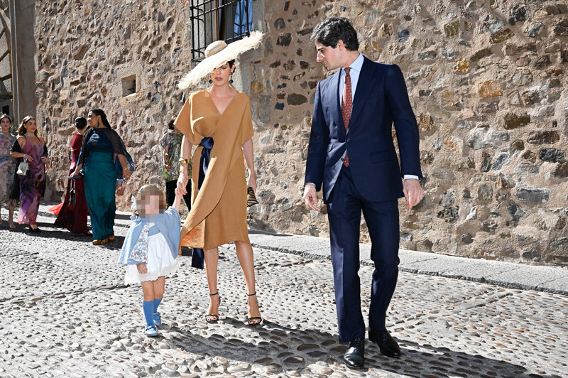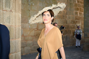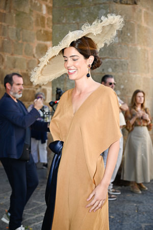 Sofía Palazuelo se pasa el juego con este vestidazo otoñal y maxi pamela en la boda de su hermano Fernando