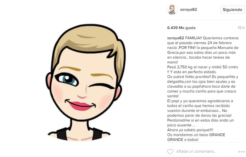 Soraya Arnelas confirma que ya es mamá de Manuela de Gracia