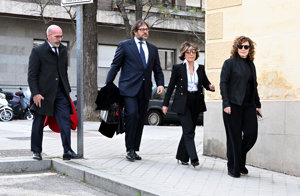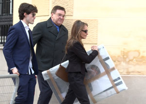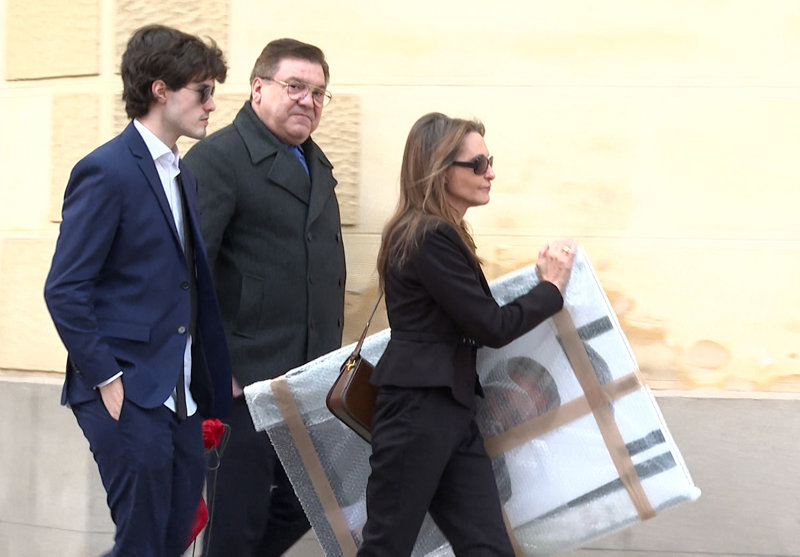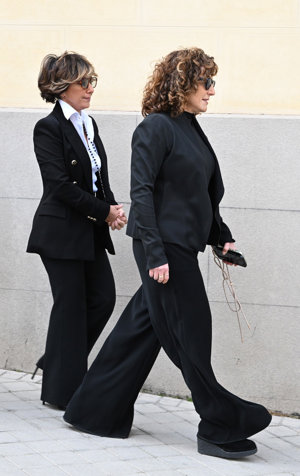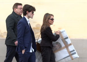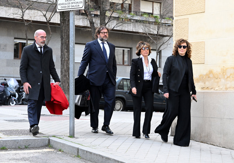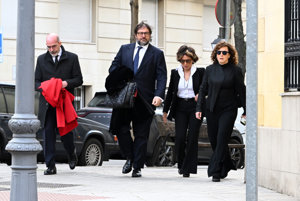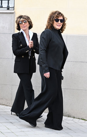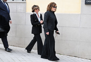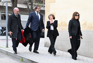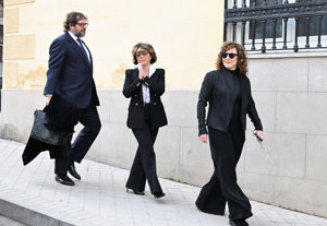 La viuda y los hijos de Fernando Ónega, Sonsoles, Cristina y Fernando, devastados en su último adiós