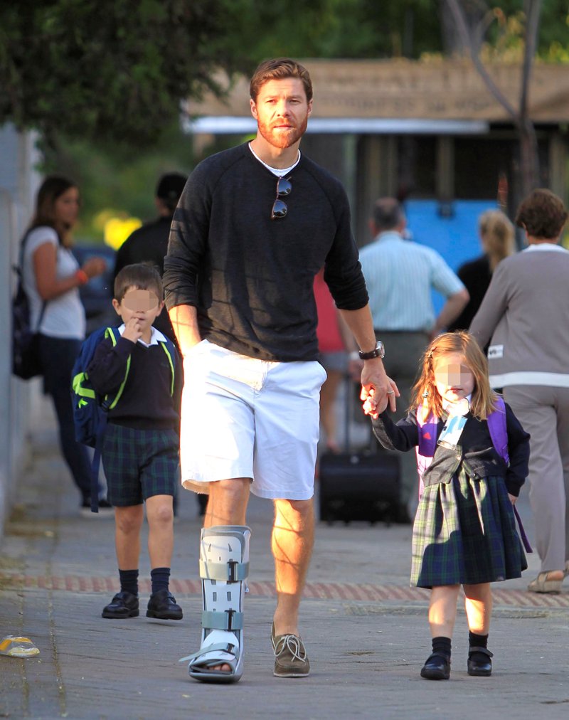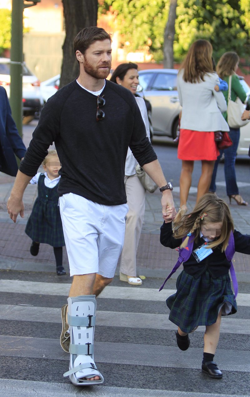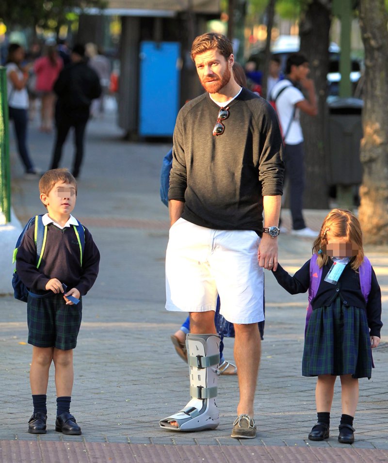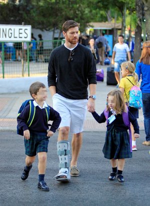 Xabi Alonso lleva a sus hijos al colegio a pesar de llevar una férula