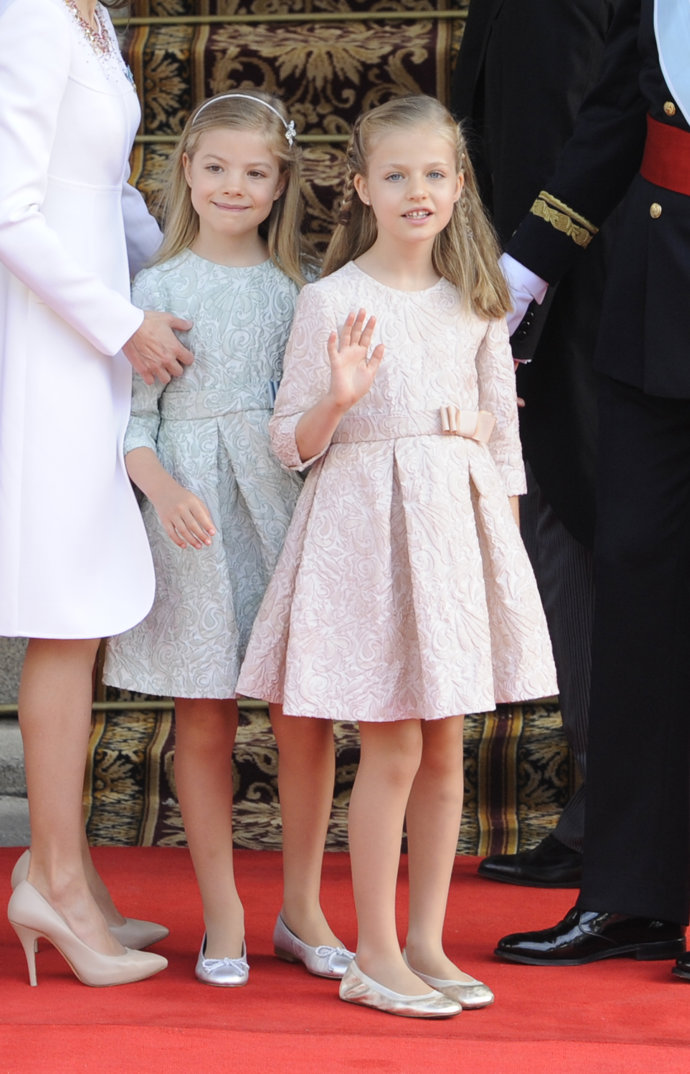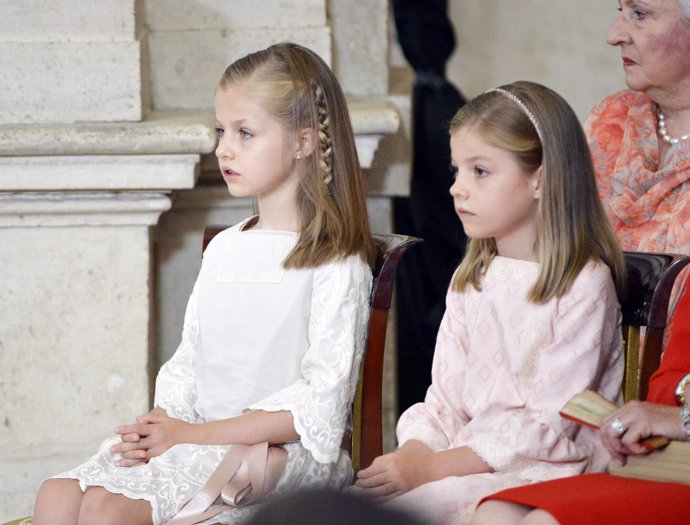 En aquella ocasión, tanto Leonor como Sofía vivieron uno de los momentos más importantes de sus vidas con dos looks muy similares sello de las modistas asturianas Nieves García Torres y Teresa Fernández Castro. Antes de ir diferenciando sus estilos personales con el paso de los años, era habitual ver a las pequeñas conectando sus looks en las citas más señaladas como fue el caso de la proclamación de su padre. En esta ocasión, llevaron vestidos exactos hechos a medida pero en colores diferentes.