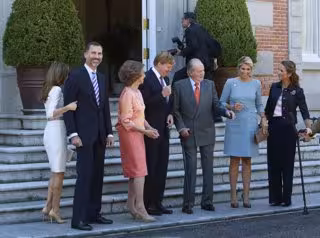 Los Príncipes de Asturias fueron a recibir a sus amigos los Reyes de Holanda a la base aérea de Torrejón a pie de pista. La Princesa Letizia, recibió a Máxima con una reverencia a Guillermo y Máxima.