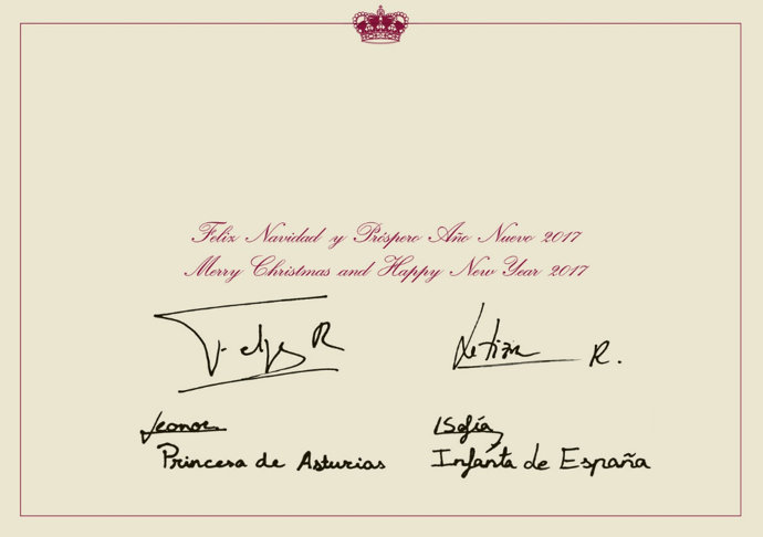 Los cuatro aparecen en la imagen unidos, la Reina abraza con un brazo a Sofía, subida a su regazo, mientras con el otro brazo agarra por detrás a Leonor, que aparece agarrada de la mano de su padre. Sin duda una imagen que transmite unidad familiar, felicidad y cariño, perfecta para trasladar sus mejores deseos al pueblo español.