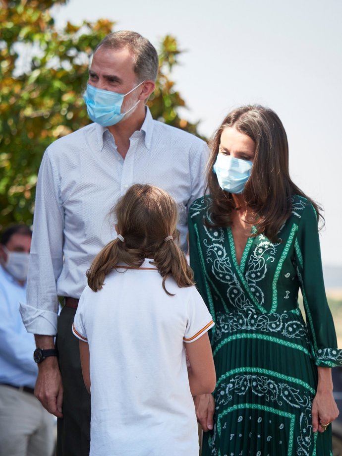 Doña Letizia, con sus ya imprescindibles espadrilles en este tour, ha apostado todo al verde rescatando el vestido de corte étnico de Sandro París que le vimos en diciembre de 2018, en la presentación de un congreso sobre mujeres, y en abril de 2019, durante una reunión anterior a su viaje de cooperación a Mozambique.