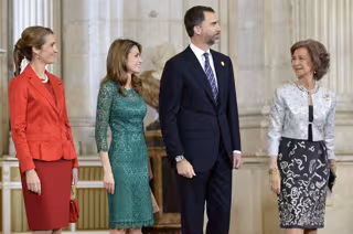 Doña Letizia lució para la ocasión un ajustado vestido verde de encaje que combinó con zapatos de tacón de color beige, y un pequeño clutch del mismo color que los tacones, con un detalle de pedrería a juego con el vestido. Su cuñada la Infanta doña Elena, escogió para la ocasión un modelito muy rojo, optó por vestido a juego con una chaqueta entallada roja. Para el calzado se decantó también por el color rojo, a demás de lucir un bolso 'Chanel' del mismo color que el resto del conjunto. Las cuñadas mostraron una gran complicidad entre ellas.