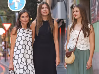Para la ocasión, la Reina estrenaba un vestido de maxi lunares en blanco y negro con sandalias planas en el mismo color. Por su parte, Leonor recurría a un pantalón en color verde y top en blanco que combinaba con bolso de rafia mientras que su hermana Sofía elegía un vestido midi en color negro.