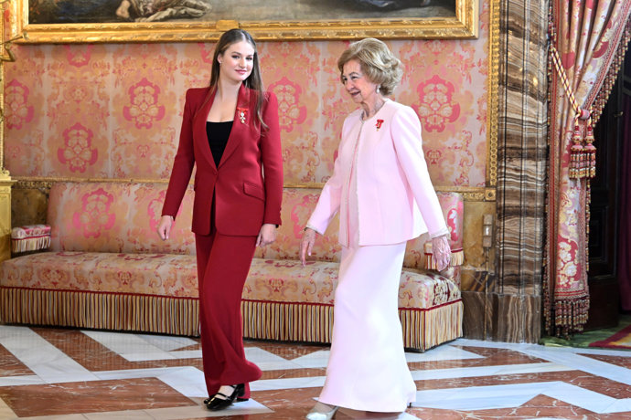 Un reconocimiento -la máxima distinción que puede entregar su Majestad- que la Emérita ha recibido con emoción contenida ante la orgullosa mirada de la Reina Letizia, la Princesa Leonor, y la Infanta Sofía, y en el que como no podía ser de otra manera ha lucido un look digno de este momento tan especial.