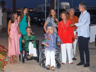 A la hora del posado familiar, las más jóvenes se adelantaban para poder colocar las sillas de ruedas de frente a las cámaras mientras la Reina Letizia saludaba con la mano a los medios de comunicación. La Princesa Leonor junto a Tatiana Radziwill eran las primeras en dirigirse al interior del restaurante, seguidas de la infanta Leonor e Irene de Grecia, la Reina Letizia, la Reina Sofía, el Rey Felipe VI y Fruchaud.