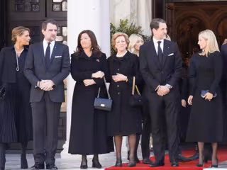 Demostrando una vez que son una auténtica piña, la Familia Real griega ha estado presente en este acto tan emotivo. Vestidos de riguroso luto, en coches oscuros y con rostros muy serios en un día tan señalado para honrar la memoria de Constantino, fueron llegando con minutos de diferencia al cementerio de Tatoi; encabezando la comitiva, la Reina Ana María acompañada por su hija Alexia. A continuación, Pablo - actual cabeza de familia - con su esposa, Marie Chantal-Miller y sus cinco hijos: Olympia, Constantino, Aquiles, Odiseo y Arístides. En otro de los vehículos, Nicolás de Grecia y su mujer, Tatiana Blatnik, recibidos por varias personas anónimas que no dudaron en desplazarse hasta el lugar para transmitirles su cariño.
