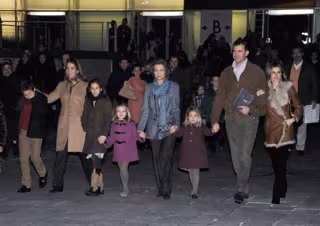 A la salida pudimos ver a todos los miembros de la mano, en concreto Doña Sofía en el medio uniendo ambas familias, la de los Príncipes de Asturias y la de la Duquesa de Lugo. Muy sonriente, destacó la pequeña Leonor quien caminaba del brazo de su abuela y su prima con un abrigo morado, leotardos grises y zapatos a juego. Igualita que su hermana Sofía.