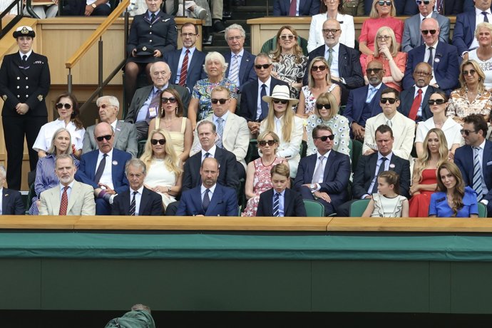 Archivo - El Rey Felipe VI (1i) junto a los príncipes de Gales, Guillermo (3i) y Kate Middleton (1d), durante la final del Campeonato de Wimbledon 2025, en Londres (Reino Unido). - EUROPA PRESS REPORTAJES - Archivo