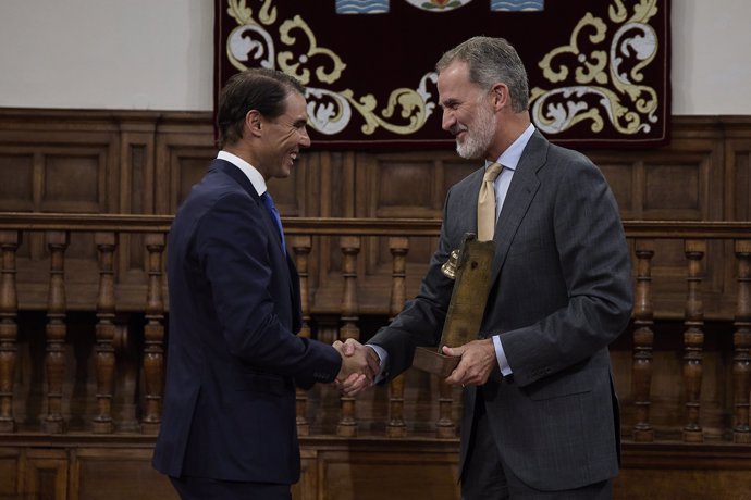 El tenista español Rafa Nadal ha recibido el ‘Premio Camino Real’ que otorga la Universidad de Alcalá de Henares a españoles sobresalientes. Don Felipe ha sido el encargado de entregar dicho galardón a uno de los mejores deportistas de la historia de nuestro país.