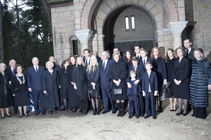 Durante la misa funeral los tres hijos de Doña Sofía han mostrado sus respetos y han dejado cada uno de ellos una corona de flores encima de la tumba del rey. Doña Cristina no se ha separado ni un solo momento de su prima y amiga íntima Alexia de Grecia.
