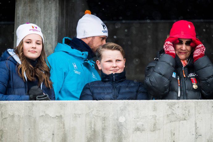 Al evento de esquí acrobático que recibe el nombre de Raw Air Jump Run tampoco faltaron los actuales reyes Harald y Sonia, que aprovecharon la cita para estar cerca de sus nietos y los futuros herederos.