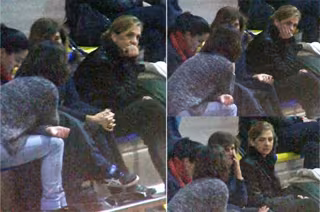 La Infanta Cristina, ausente mientras ve jugar a su hijo un partido de balonmano. La cara de la Duquesa de Palma no era de alegría, todo lo contrario, era un poema. De hecho, aunque la Infanta estaba con otras mamás e intentaban que Cristina fuera una más, ella estaba ausente, con la cabeza en otro sitio y no hacía caso a la conversación.