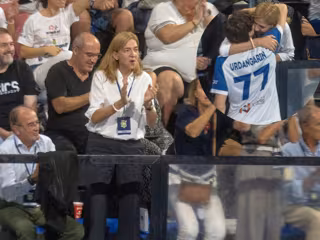 Tras deslumbrar en una boda este fin de semana en Medina Sidonia, Doña Cristina ha viajado hasta Barcelona para demostrar una vez más la maravillosa relación que mantiene con su hijo Pablo, al que en primera fila y acompañada por unos amigos no ha dejado de animar en ningún momento.