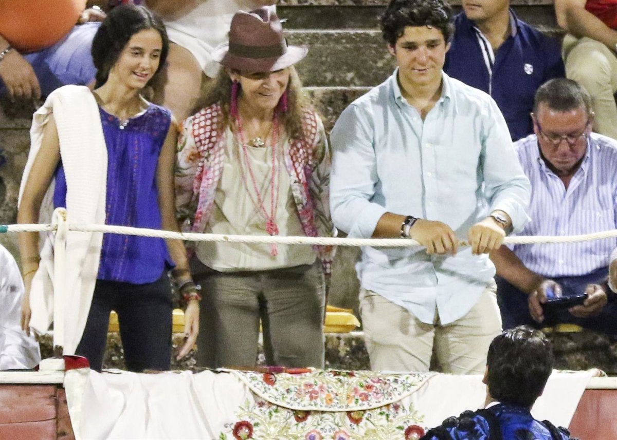 Como era de esperar, un cartel así llamó la atención de importantes seguidores taurinos como la duquesa de Lugo, que acudió acompañada de sus hijos, Victoria Federica y Felipe Froilán. Doña Elena, con abanico a modo de capote, sofocó el calor reinante en Palma.