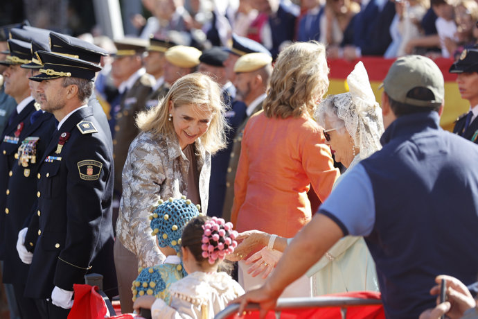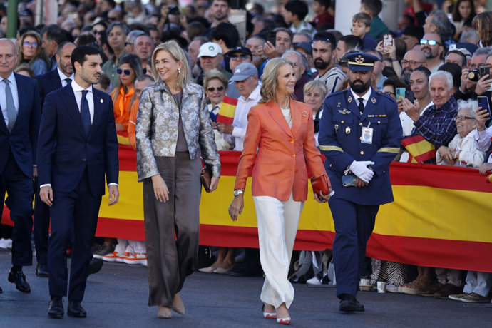 La Infanta Cristina y la Infanta Elena han asistido este domingo, 5 de octubre, al gran Homenaje a la Bandera, una de las celebraciones más esperadas de las fiestas patronales de Torrejón de Ardoz.