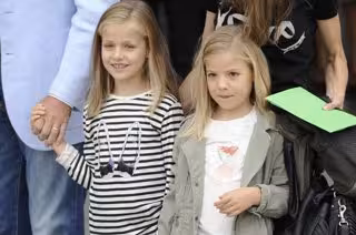 Doña Sofía salió con ellos, y precisamente llevaba de la mano a Doña Leonor, que fue la encargada de contar que el monarca ya estaba mejor "Está muy bien el abuelo". sin embargo Sofía, a la que se la ve más risueña y con menos vergüenza ante las cámaras, se quedó en un segundo plano por su hermana mayor.
