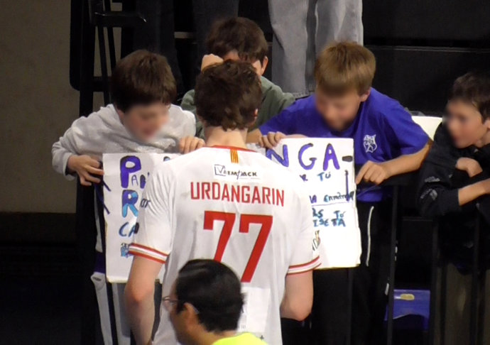Además del apoyo incondicional de su amor, Pablo también recibió el cariño de unos pequeños aficionados que no dudaron en pedirle su camiseta a través de una original pancarta de cartón que enseñó orgulloso a su novia mientras esta inmortalizaba el momento con su teléfono móvil.