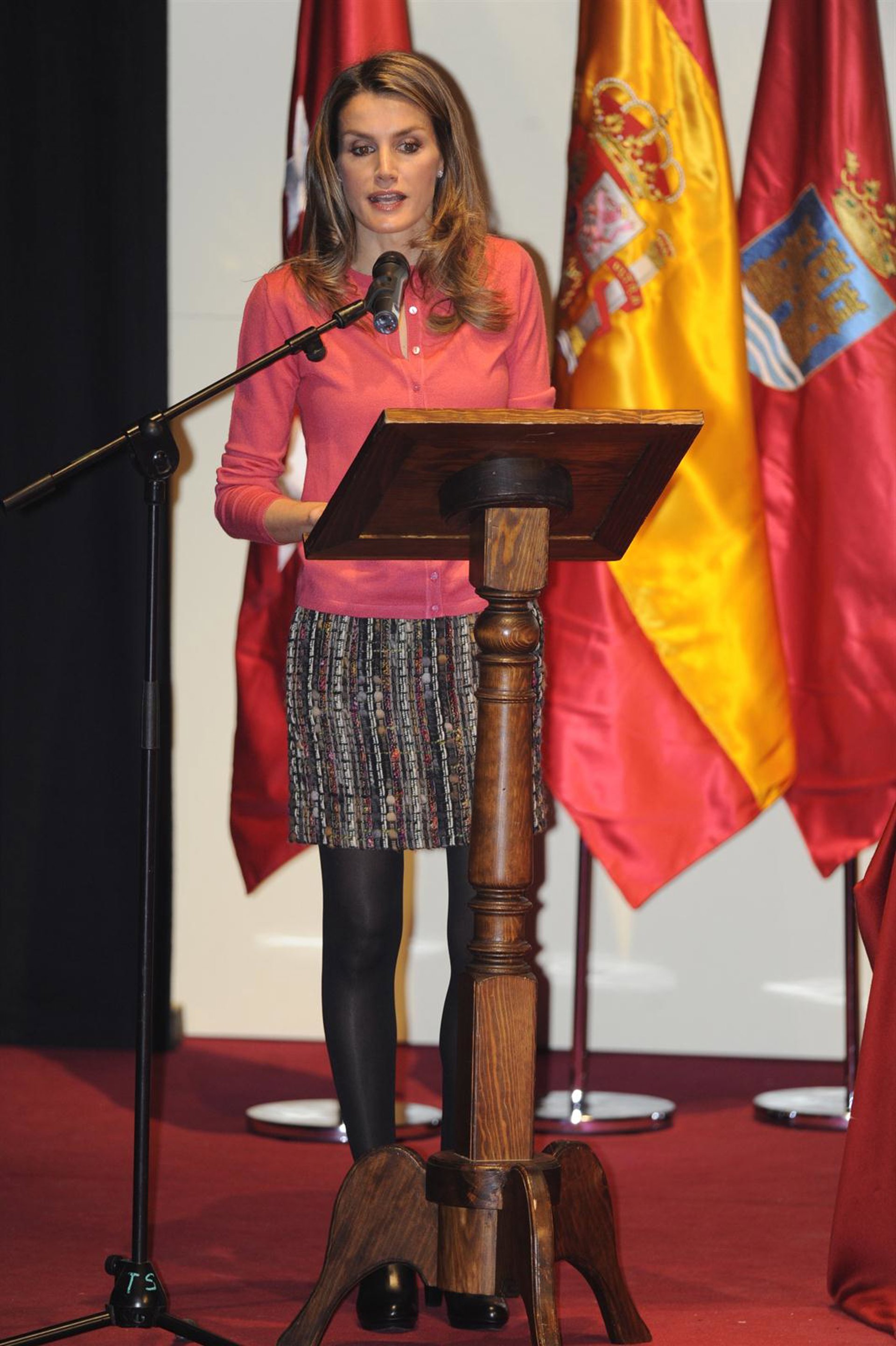 Para una ocasión tan especial Letizia ha querido mostrar su lado más juvenil, con un look moderno y desdefandado. La princesa combino una minifalda de lana en tonos multicolor con una chaqueta de lana en color fresa y unos botines de tacón que ya ha lucido en otros actos y que no levantaron buenas criticas.