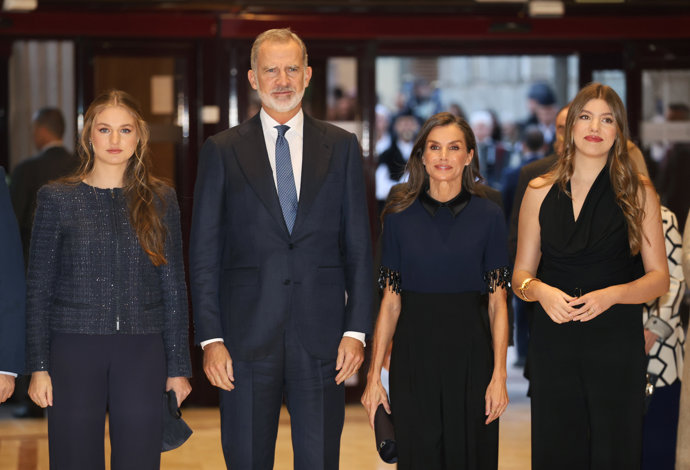 La Familia Real el Rey Felipe IV, la Reina Letizia, la Princesa Leonor y la Infanta Sofía llegan al Auditorio Palacio de Congresos para asistir al XXXIII Concierto Premios Princesa de Asturias, a 23 de octubre de 2025, en Oviedo (Asturias, España).- EUROPA PRESS REPORTAJES