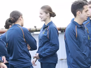 La heredera de la Corona ha participado en el ejercicio de subida al mástil junto con el resto de los 76 guardiamarinas que junto a ella realizarán el crucero con el que completarán su formación naval, según se aprecia en las imágenes facilitadas desde la Casa del Rey.
