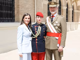 En esta ocasión, Doña Leonor ha lucido el uniforme de gala del Ejército de Tierra, correspondiente a la primera época de La General, con casaca azul y pantalón rojo, el mismo que llevó el día de su jura de bandera y que también vistió su padre en primera jura.