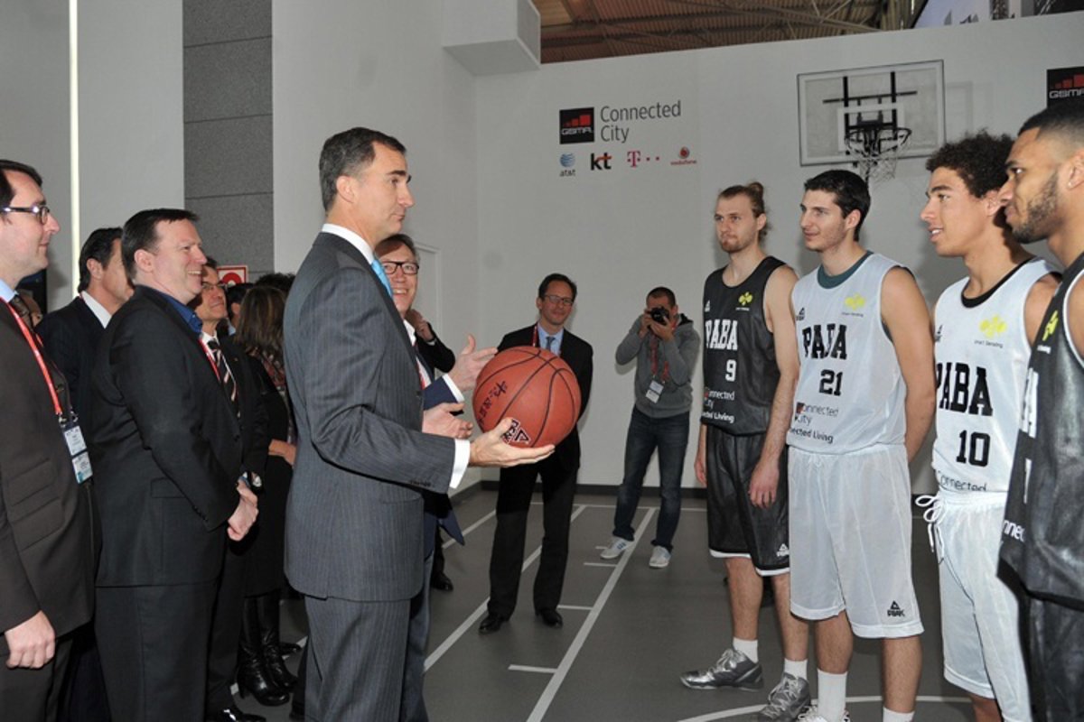 Antes de abandonar el recinto, Don Felipe no dudó en demostrar que está en forma y sabe tirar a canasta. Durante el recorrido, se detuvo en uno de los stands en los que había unos jugadores de baloncesto y una canasta. Con mucha naturalidad y simpatía, les pidió el balón y se atrevió a hacer un lanzamiento.