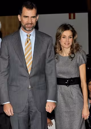 Doña Letizia escogió un vestido entallado a la cintura con fajín negro y el pelo suelto, muy sencillo, mientras que Don Felipe se decantó por un traje de rayas grises y una corbata también rayada, en tonos naranjas y blancos.
