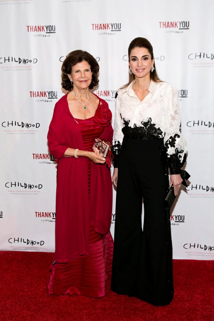 Elegante como siempre, Rania de Jordania ha vuelto a brillar, esta vez en Nueva York en la gala World Childhood Foundation USA ThankYou a la que acudió con la reina Silvia de Suecia.