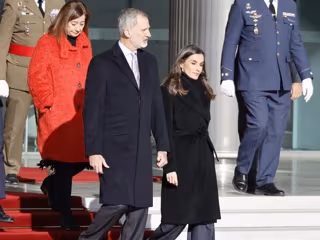 Dejando los complementos a un lado, la Reina ha optado para este viaje por un estilismo abrigado y sofisticado, ideal para hacer frente al frío de Madrid y el invierno italiano. Letizia ha elegido un abrigo negro de paño, bufanda y pantalones grises anchos, complementando su conjunto con unos botines de tacón ancho, sorprendiendo a todos al optar por un calzado elevado, ya que últimamente se ha decantado por zapatos planos debido a problemas en los pies.