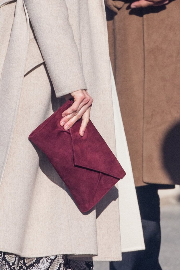 Lo ha combinado a la perfección con un abrigo tipo batín en color gris con solapas en blanca, que ya hemos podido verle en varias ocasiones. Ha completado su look con sus recurrentes salones en burdeos y con tira al tobillo de Lodi, en el mismo tono que su cartera de mano, de Magrit. Como pendientes, unos largos en oro blanco y rubíes.