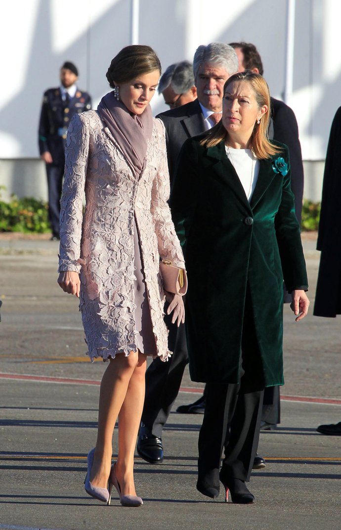 Altos cargos de la Armada y del resto de los Ejércitos españoles han acudido al aeropuerto de Adolfo Suárez- Barajas para despedir a los Reyes, así como la Presidenta del Congreso de los Diputados, Ana Pastor, con la que Doña Letizia ha hablado animadamente.