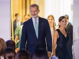 La Princesa Leonor ha sido también aplaudida por su gran elección: un vestido en color verde agua, con escote en pico, hombrera abullonada, ceñido en la cintura y de corte midi. A juego con ella, su padre, el Rey Felipe se ha dejado ver con una corbata en el mismo tono del traje de su hija.