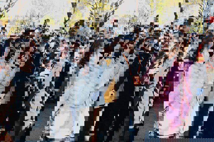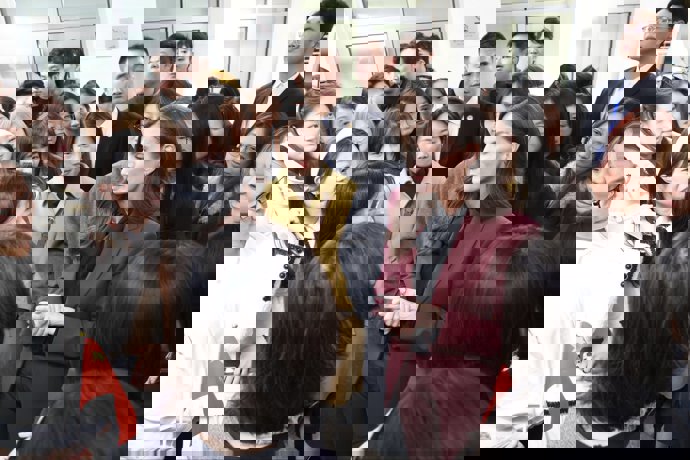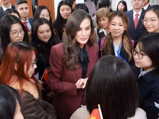 Cercana, cariñosa y dando muestras de su espontaneidad, Doña Letizia ha charlado durante largo rato con los estudiantes chinos de español, que le han contado que entre los motivos que les han empujado a aprender nuestra lengua están su pasión por la cultura, la música o el cine patrio, y por artistas como Rosalía.
