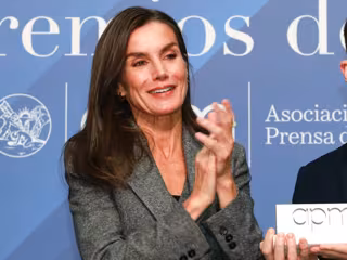 Tras darse un baño de masas durante su visita este martes con el Rey Felipe VI a tres de las localidades más sacudidas por la DANA, Chiva y Utiel (en Valencia), y Lemur (en Albacete), la Reina Letizia ha retomado su agenda oficial en Madrid. Y en una semana marcada por su antigua profesión -ya que el lunes entregó con el monarca el Premio Francisco Cerecedo de Periodismo al presentador Carlos Franganillo- ha presidido en la Real Casa de Correos la entrega de la 85ª edición de los "Premios de la Asociación de la Prensa de Madrid" de Periodismo 2023 a Pedro Piqueras, Jesús Duva, Santiago Cid y 'Madrid Directo'.