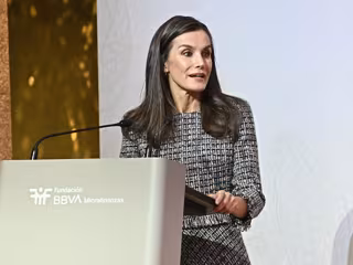 Un vestido que estrenó el pasado mes de abril en la entrega del Premio Cervantes, en Alcalá de Henares, y que ha vuelto a lucir combatiendo la bajada de temperaturas en la capital. En cuanto al calzado, la Reina Letizia ha optado por la comodidad con unos zapatos de tacón bajo en color negro a juego con un bolso de mano mini de la firma Carolina Herrera.