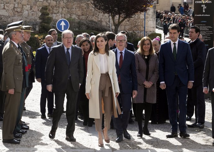Tras la visita ayer del Real Monasterio de la Encarnación, la Reina Letizia ha continuado hoy la excursión real visitando la Iglesia Colegial de San Pedro y el Monasterio de la Ascensión del Señor en Lerma, Burgos, participando en la inauguración de la exposición Angeli de la Fundación Las Edades del Hombre. Aprovechando la ocasión la mujer de Felipe VI se ha dado un auténtico baño de masas.