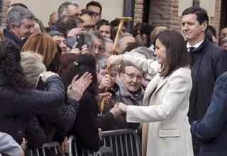 Aunque hacia mucho tiempo que no la veíamos acercarse a la gente de a pie, Doña Letizia no ha podido evitar saludar desplegando toda su simpatía a las señoras que emocionadas se acercaban hasta la iglesia.