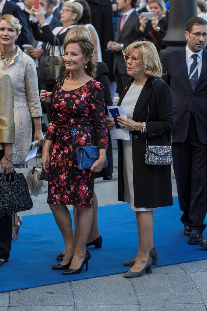 Entre los asistentes hemos podido ver, un año más, a la madre de Doña Letizia, Paloma Rocasolano, con un elegante vestido negro con print floral rojo y los mismos pendientes que lució en el 2015, unas joyas prestadas por su hija.