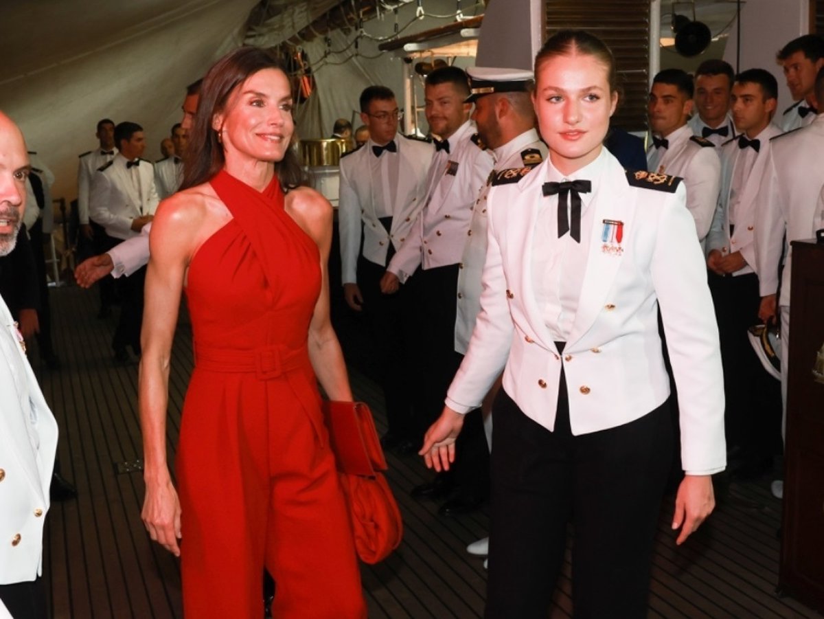 En cuanto a la Princesa Leonor, su look fue el del uniforme de gala de los guardiamarinas... pero sin duda lo que más llamó la atención fue la felicidad que derrochaba al tener a su madre cerca y poder pasar este fin de semana -coincidiendo con el Día de la Madre- a su lado.