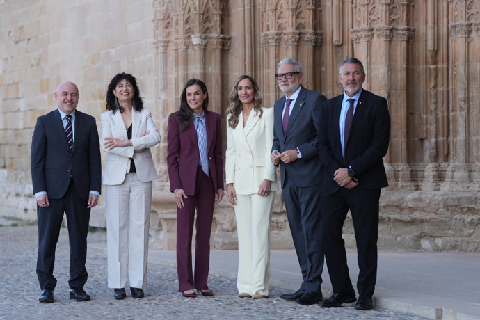Su Majestad se ha desplazado a Lleida para presidir en un lugar tan emblemático como la Catedral de la Seu Vella una reunión de trabajo con la 'Associació de Dones Empresàries de Lleida', creada en 2005 como punto de encuentro femenino para impulsar el desarrollo de las capacidades comerciales, económicas, formativas y personales de sus socias.